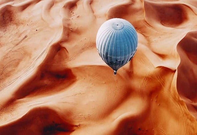 واحدة من أهم اماكن سياحية في دبي للعرسان ، والتي تُتيحها صحراء دبي للعيش في أجواء رومانسية رائعة، في جولة فريدة من نوعها بركوب منطاد الهواء الساخن، فوق كثبان رملية ناعمة ذات مظهر خلاب، وتشاهد من خلال هذه الجولة العديد من معالم المدينة، وتقوم هذه الجولات برعاية شركة بالون أدفنشرز الإمارات الموجودة في دبي، والتي توفر عروض خاصة للأزواج الذين يريدون القيام بتجربة مُميزة.