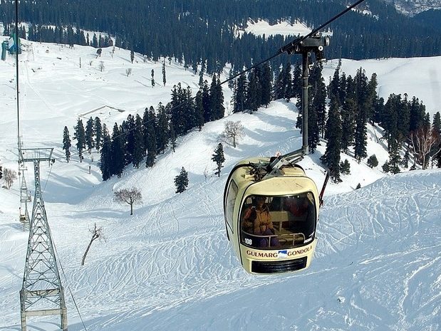 جولمارغ غوندولا Gulmarg Gondola يقع في جولمارج في جامو وكشمير ويعتبر ثاني أعلى تلفريك في العالم والاطول في آسيا