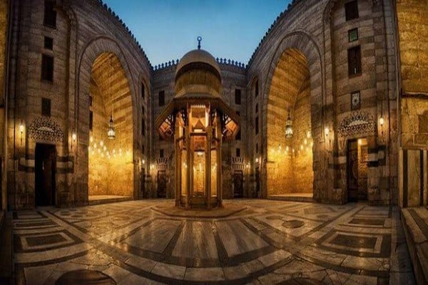 هو أحد المساجد الأثرية الشهيرة بمنطقة مصر القديمة، يوصف بأنه درة العمارة الإسلامية في الشرق، ويعد أكثر الآثار القاهرة الإسلامية تناسقًا وانسجامًا، حيث يرجع تاريخه إلى عام 757 هجريًا، ويتكون البناء من مسجد، مدرسة كان يدرس فيها مذاهب الأئمة الأربعة، القراءات السبع، وتفسير الأحاديث النبوية الشريفة.