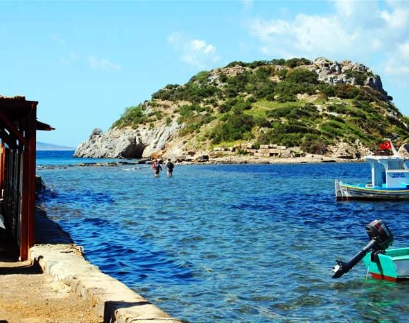 ويقع تحت الجزيرة بعض الآثار الغارقة التي يمكن رؤيتها أثناء السباحة أو الغوص، كما تتميز بتشكيلاتها الصخرية التي تكونت عبر السنين.